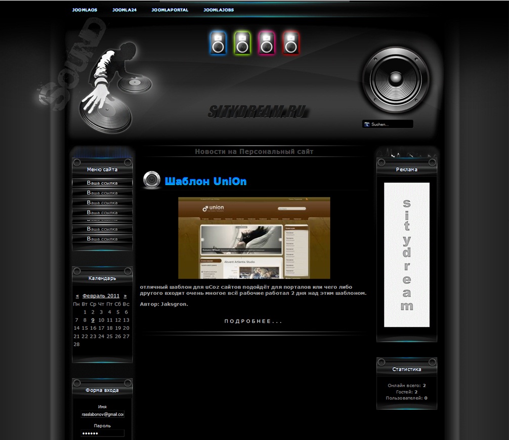Шаблон музыкального портала скачать с зеркала