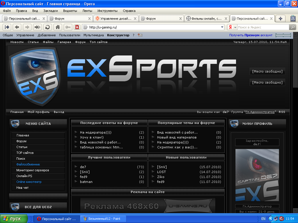 Скачать Красивый темный шаблон ехспортс Оригинал exSports 2010