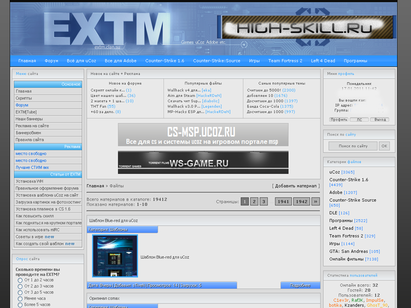 Главная страница Форум сайта Каталог файлов Галерея TOP сайтов Скачать игры Банерообмен